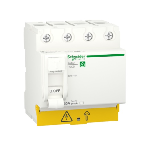 شنايدر, Resi9 قاطع حماية من التسرب الارضي RCCB , رباعي, 30 مللي امبير, 40 امبير